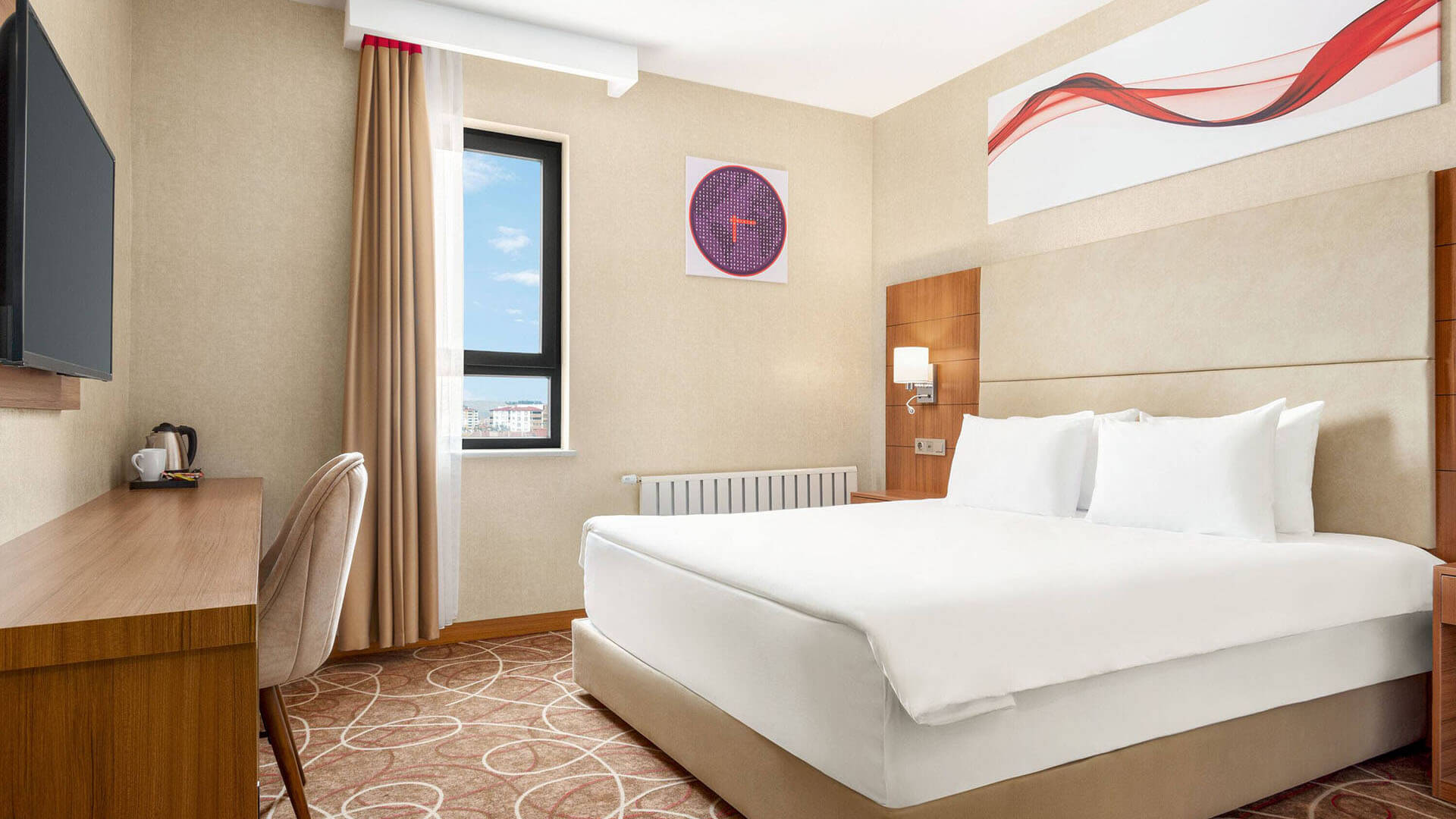 Standart King odalarımız, 22 m² uydu bağlantısı ile birçok özel kanal seçeneği sunan LCD TV kullanma imkanı, ücretsiz hızlı internet bağlantısı ve 24 saat oda servisi hizmetinden faydalanabileceğiniz özel konforlu odalardır. Günün tüm yorgunluğunu atarak kendinizi konforun huzuruna bırakabilirsiniz. Size kalan seyahatinizin tadını çıkarmak.